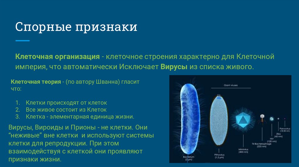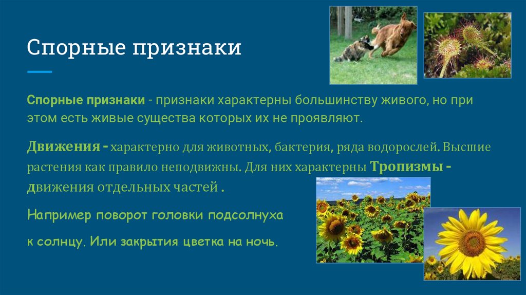 Спорные признакиСпорные признаки - признаки характерны большинству живого, но при