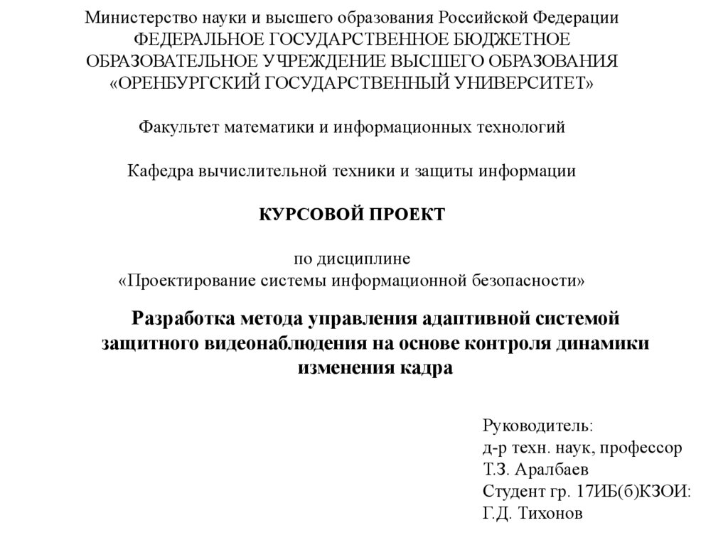 «ОРЕНБУРГСКИЙ ГОСУДАРСТВЕННЫЙ УНИВЕРСИТЕТ»