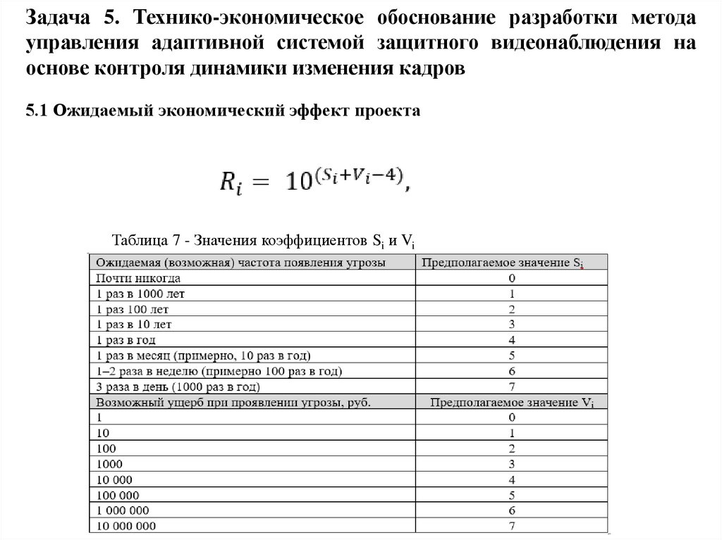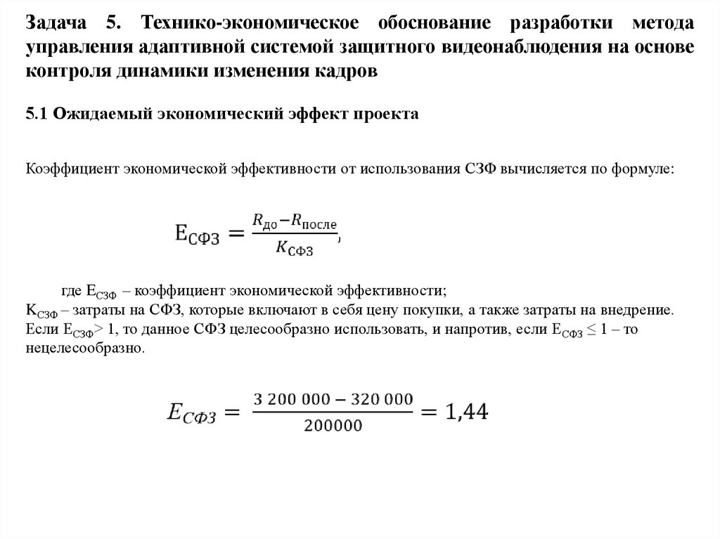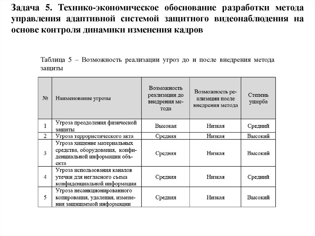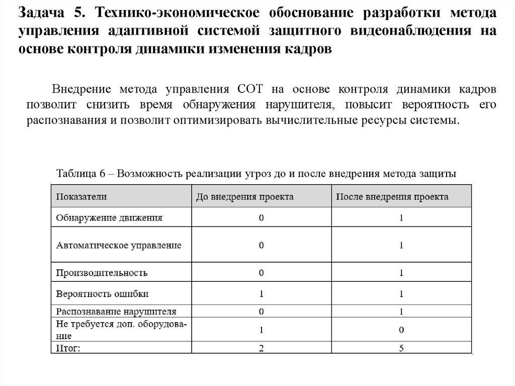 Задача 5. Технико-экономическое обоснование разработки методауправления адаптивной системой защитного видеонаблюдения на основе