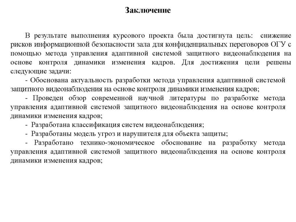 Задача 5. Технико-экономическое обоснование разработки методауправления адаптивной системой защитного видеонаблюдения на