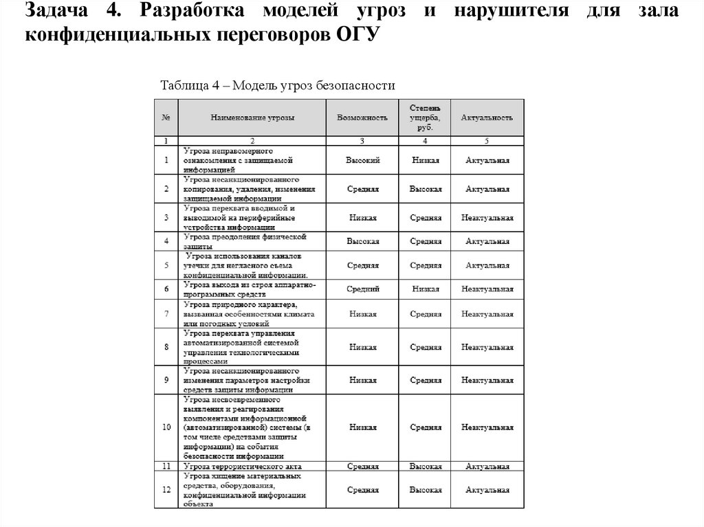 Таблица 4 – Модель угроз безопасности