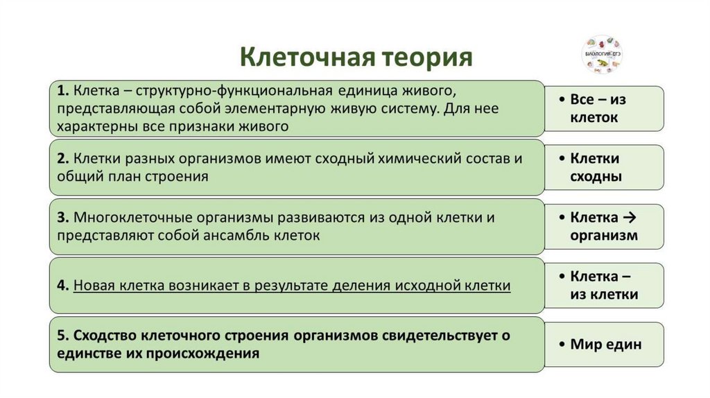 Первые положения клеточной теории1. Клетка – универсальная структурная и