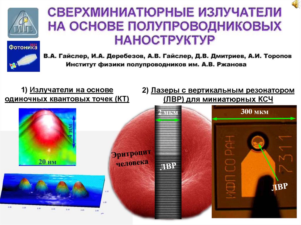 1) Излучатели на основеодиночных квантовых точек (КТ)