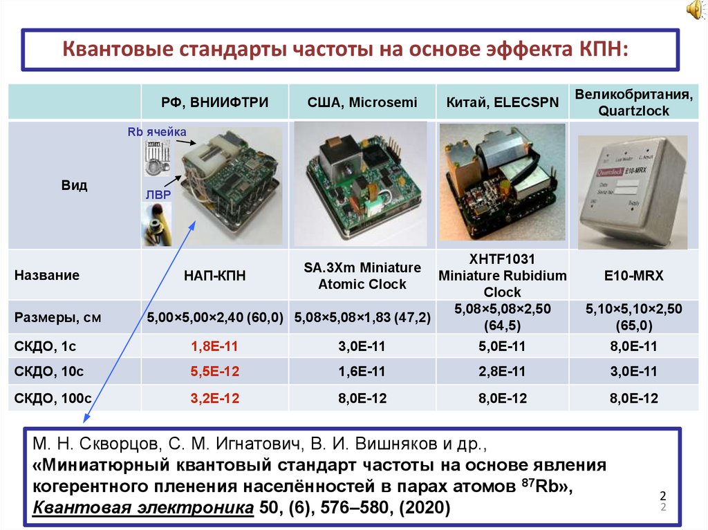 Квантовые стандарты частоты на основе эффекта КПН:РФ, ВНИИФТРИ