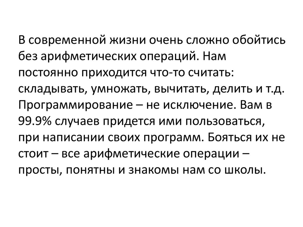 В современной жизни очень сложно обойтисьбез арифметических операций. Нам