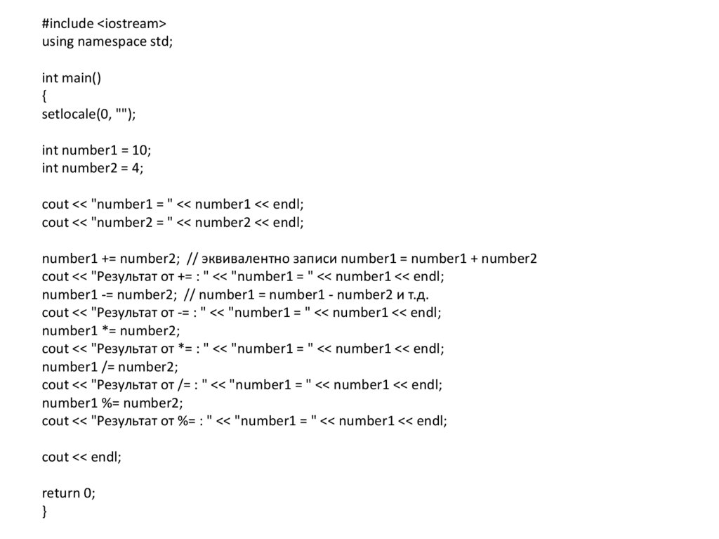 cout << "Результат от -= : " << "number1 = " << number1 << endl;