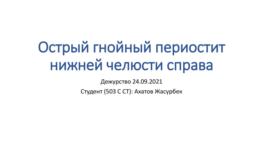 Острый гнойный периостит нижней челюсти справа. Клинический случай