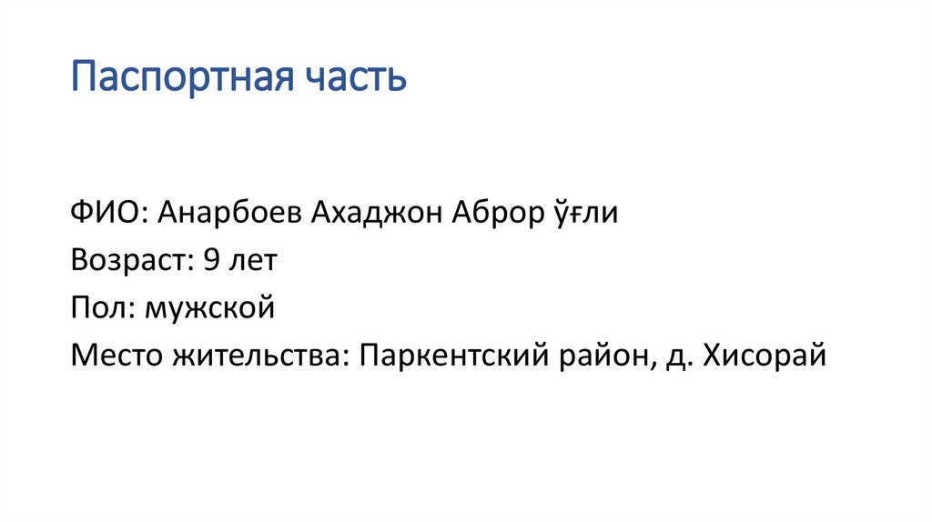 Паспортная частьФИО: Анарбоев Ахаджон Аброр ўғли