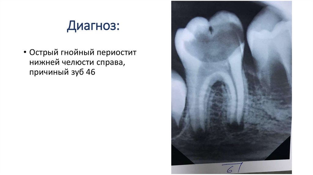 Диагноз:• Острый гнойный периостит
