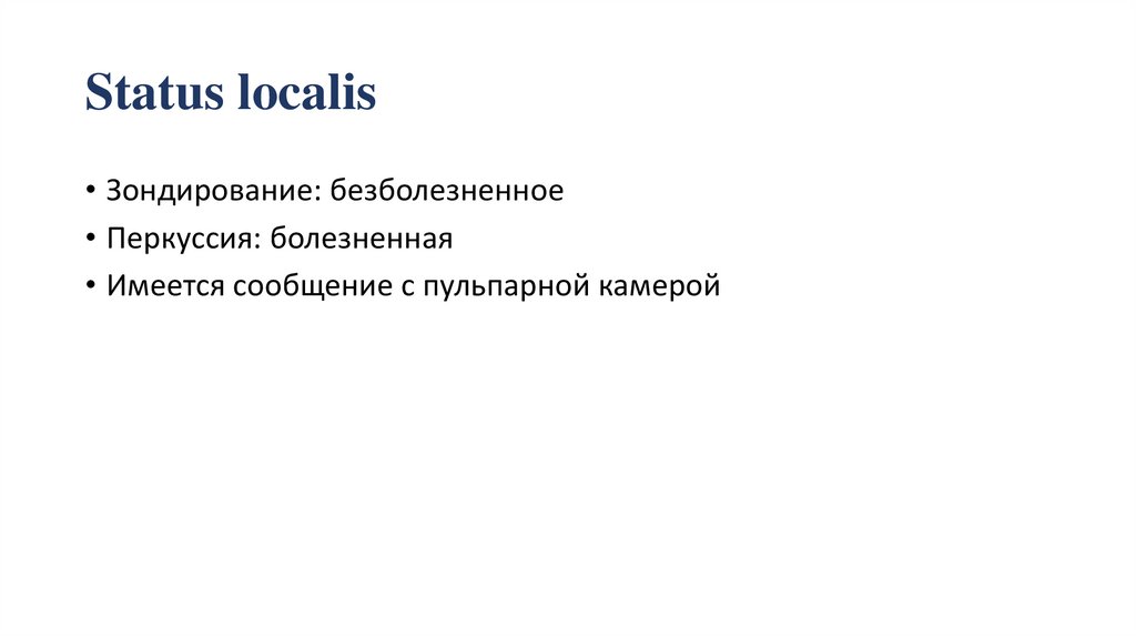 Status localis• Зондирование: безболезненное