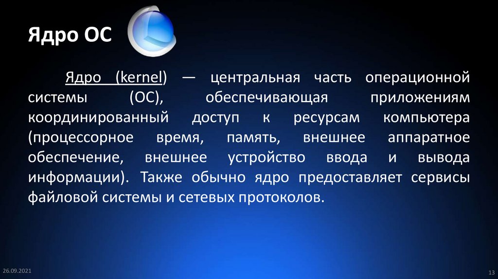 Ядро ОСЯдро (kernel) — центральная часть операционной