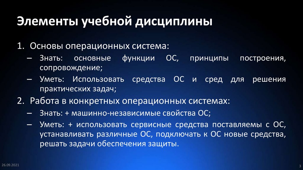 – Уметь: + использовать сервисные средства поставляемы с ОС,