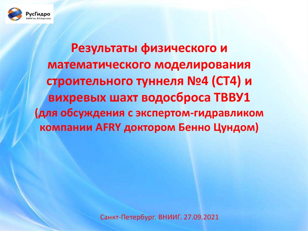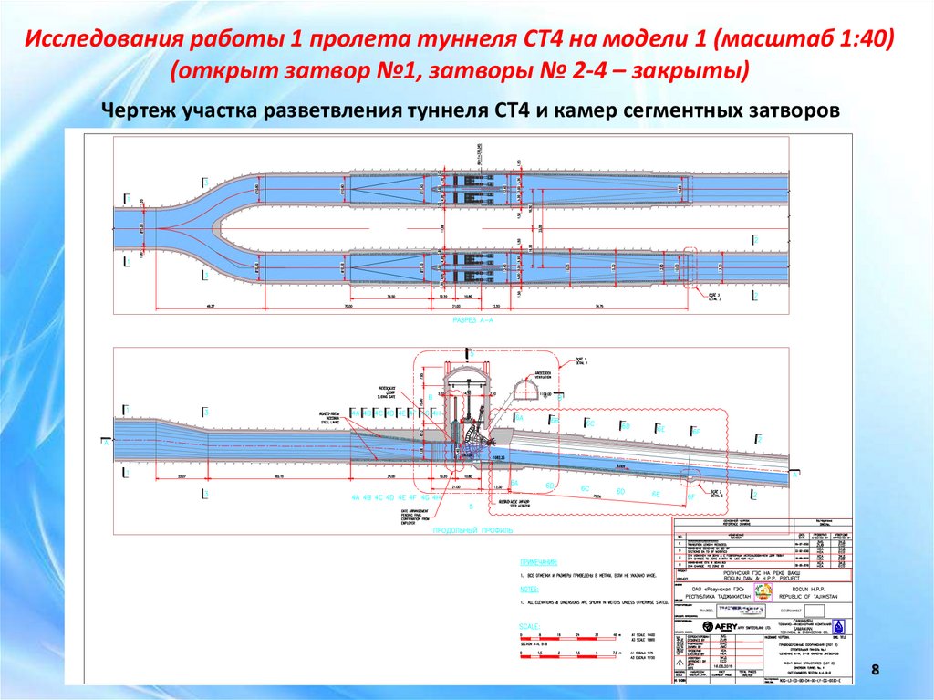 Результаты физического и математического моделирования строительного туннеля №4 (ст4) и вихревых шахт водосброса твву1