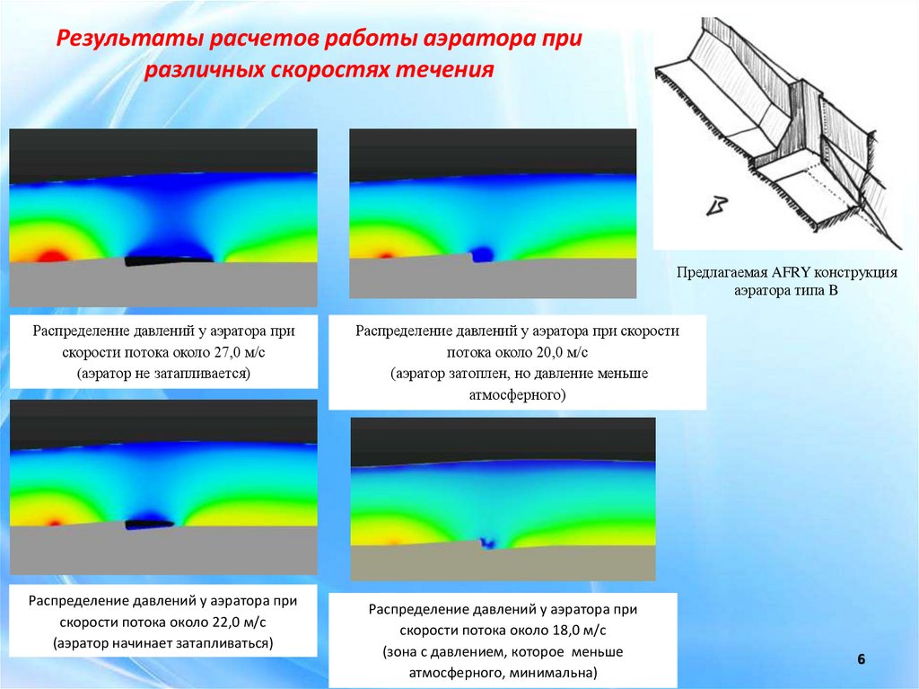 Результаты расчетов работы аэратора приразличных скоростях течения