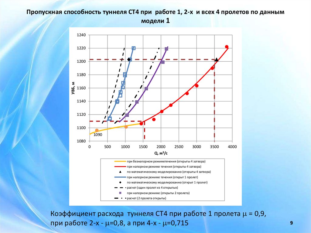 Коэффициент расхода туннеля СТ4 при работе 1 пролета = 0,9,
