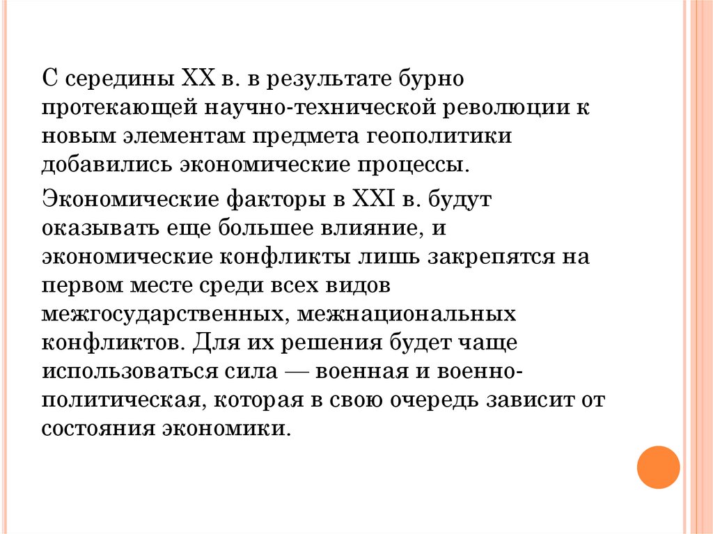 Экономические факторы в XXI в. будут