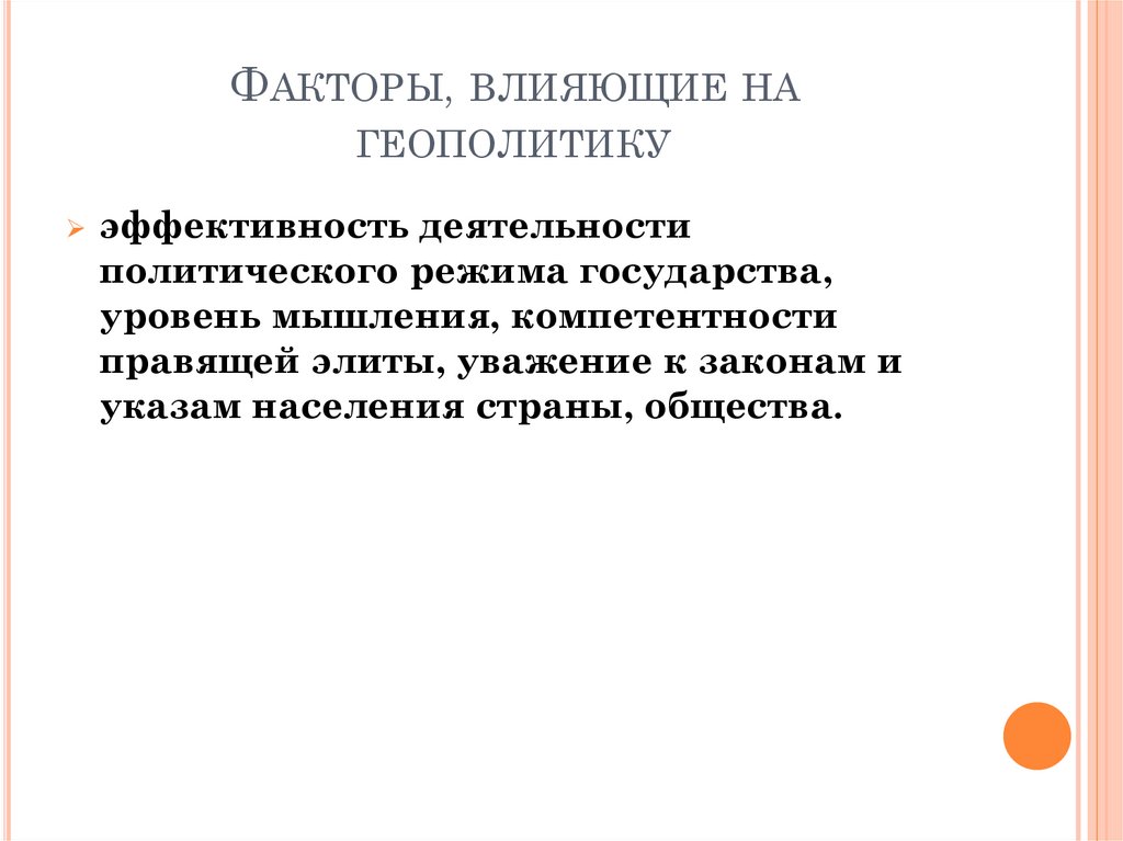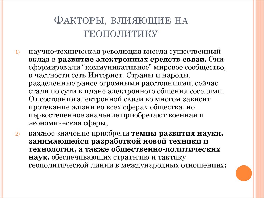 ФАКТОРЫ, ВЛИЯЮЩИЕ НАГЕОПОЛИТИКУ