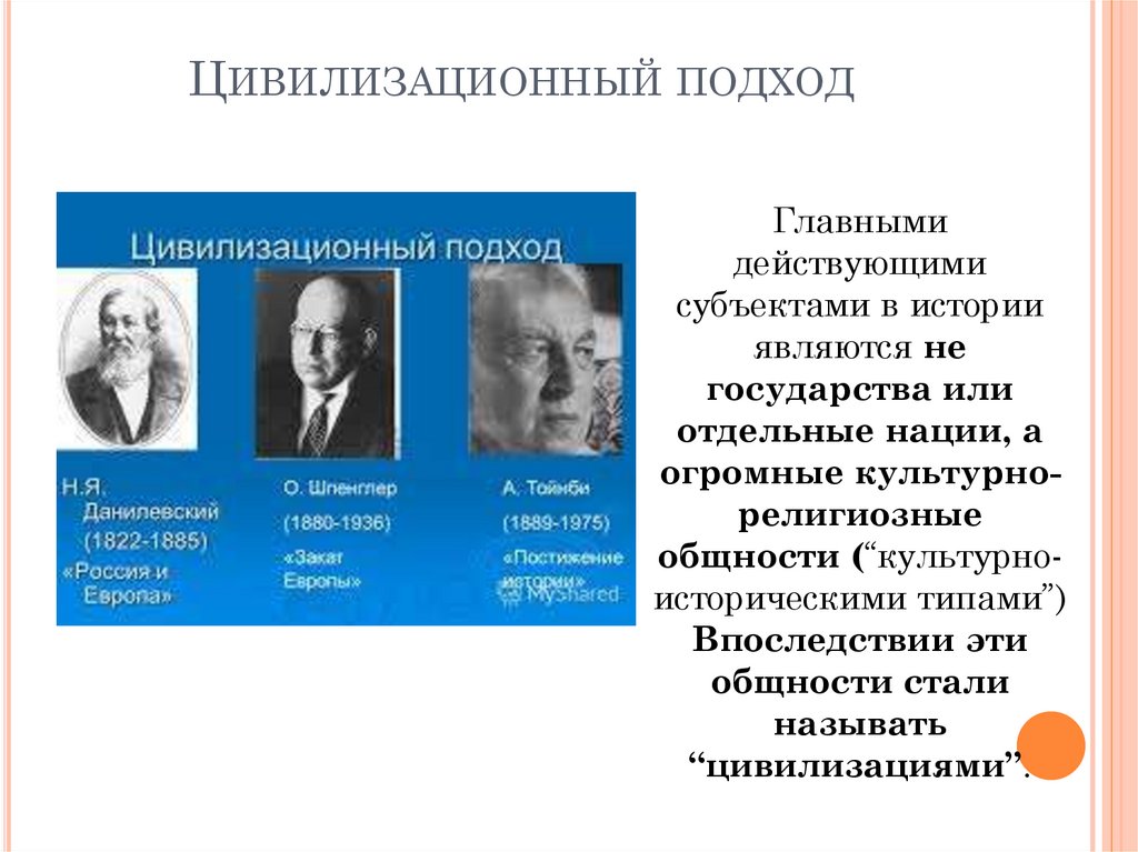 ЦИВИЛИЗАЦИОННЫЙ ПОДХОДГлавными
