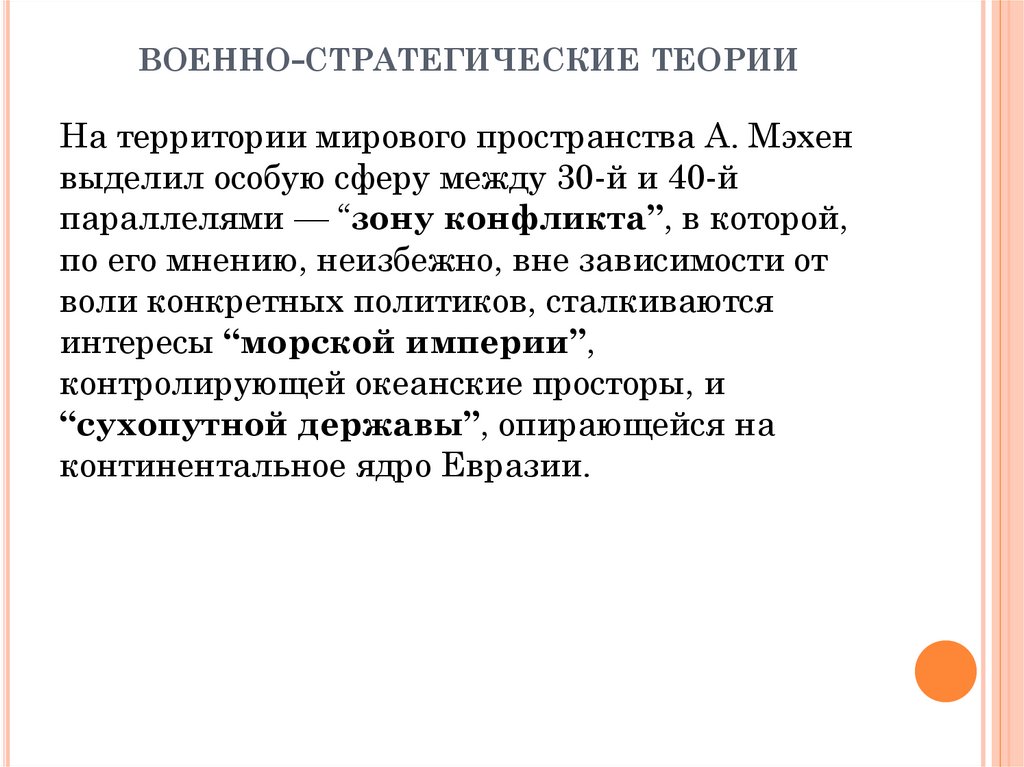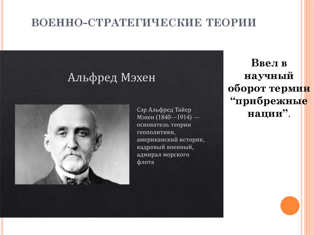 ВОЕННО-СТРАТЕГИЧЕСКИЕ ТЕОРИИНа территории мирового пространства А. Мэхен
