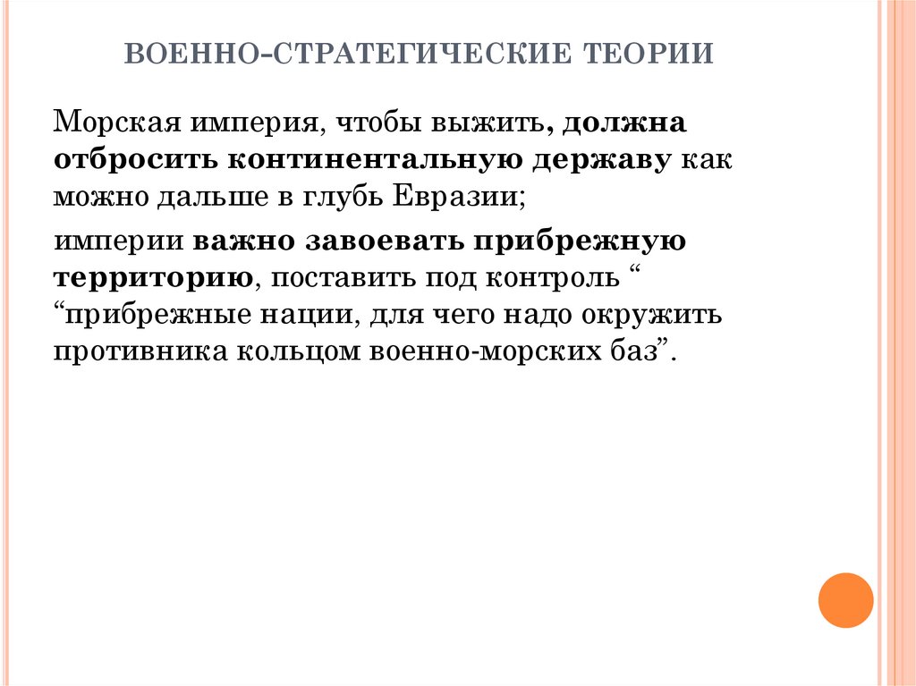 ВОЕННО-СТРАТЕГИЧЕСКИЕ ТЕОРИИМорская империя, чтобы выжить, должна