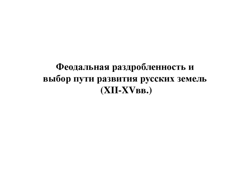 Феодальная раздробленность ивыбор пути развития русских земель