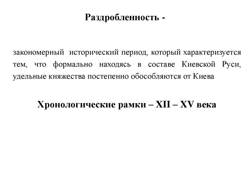 Раздробленность -закономерный исторический период, который характеризуется