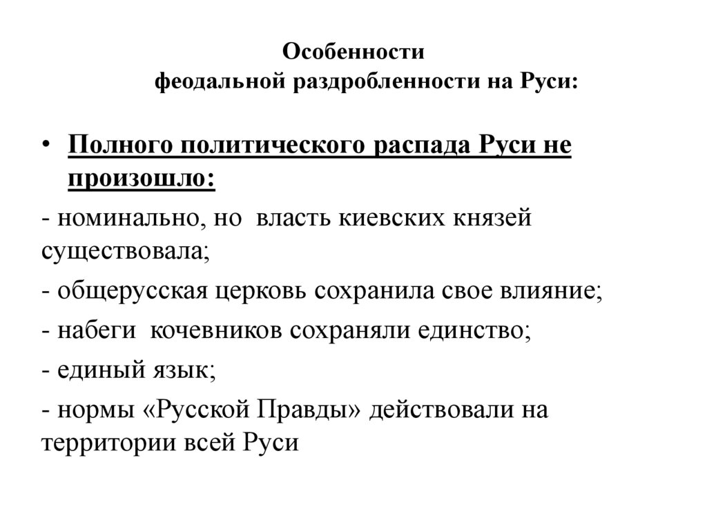 • Полного политического распада Руси не