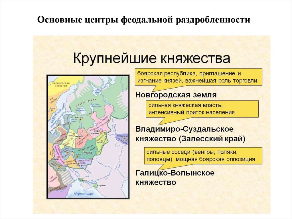 Основные центры феодальной раздробленности22.