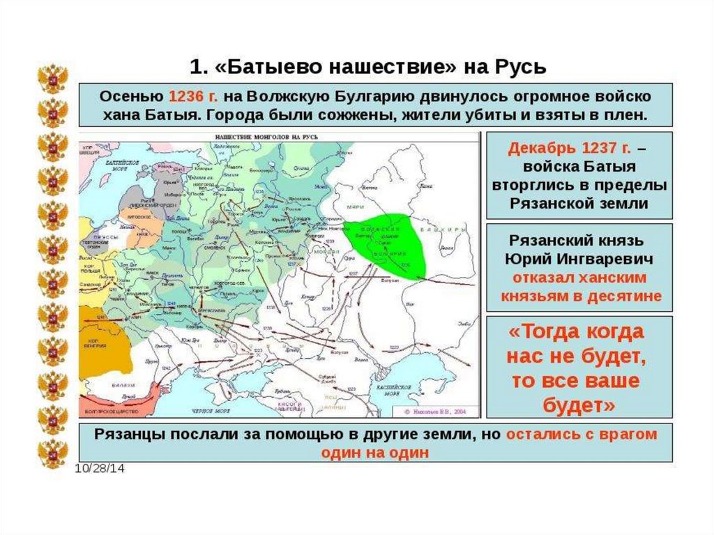 • Русские княжества находились в вассальной