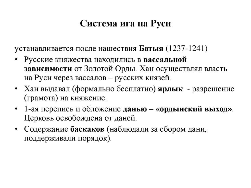 Система ига на Русиустанавливается после нашествия Батыя (1237-1241)