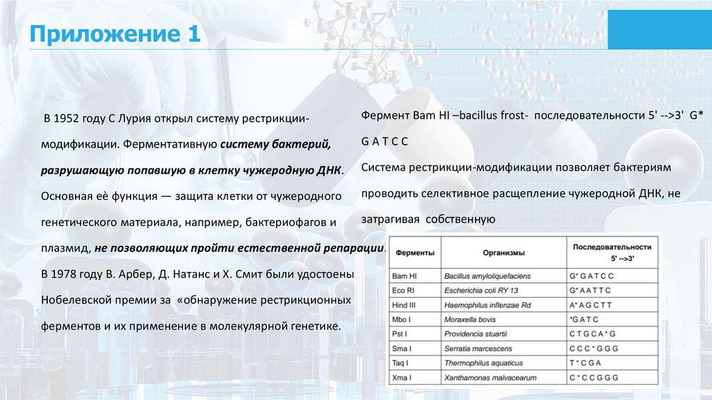 Приложение 1В 1952 году С Лурия открыл систему рестрикции-