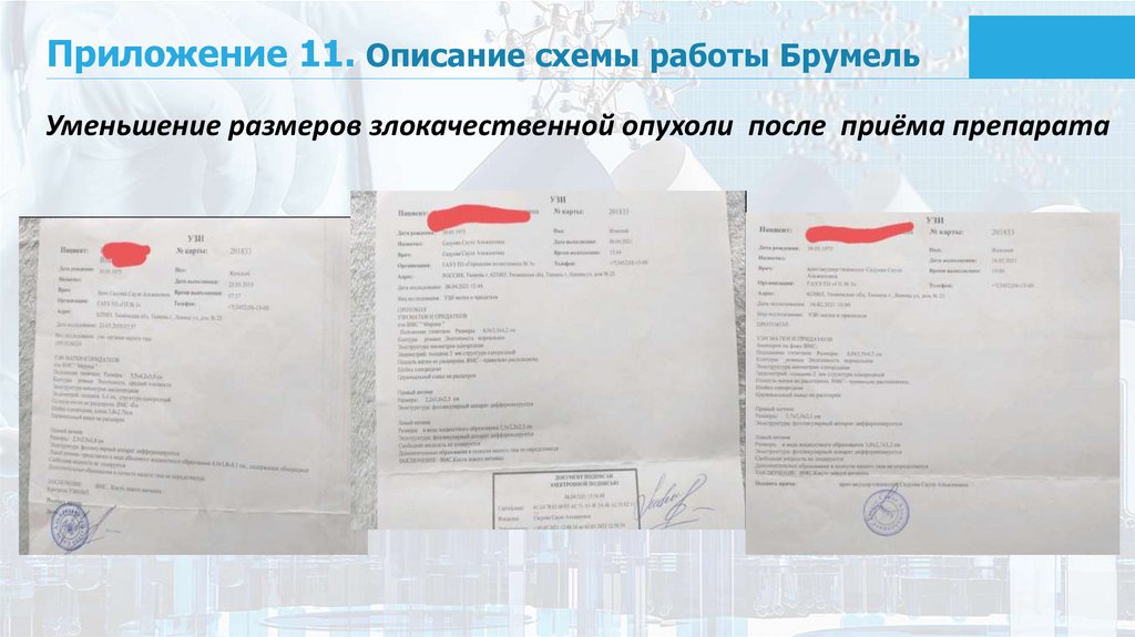 Приложение 11. Описание схемы работы БрумельУменьшение размеров злокачественной опухоли после приёма препарата