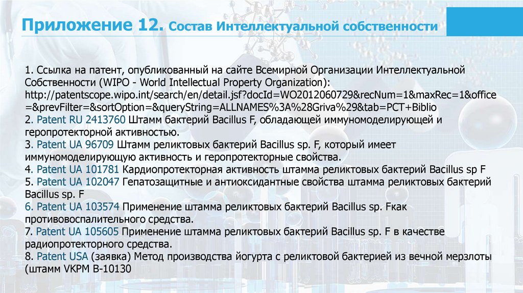Приложение 12. Состав Интеллектуальной собственности1. Ссылка на патент, опубликованный на сайте Всемирной Организации Интеллектуальной