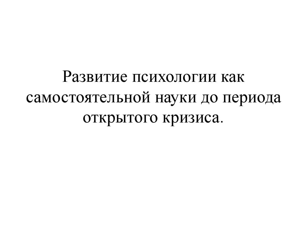 Развитие психологии как самостоятельной науки до периода открытого кризиса