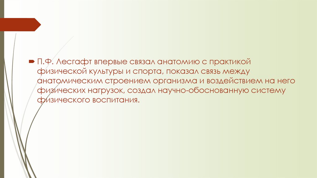 П.Ф. Лесгафт впервые связал анатомию с практикойфизической культуры и спорта, показал связь между