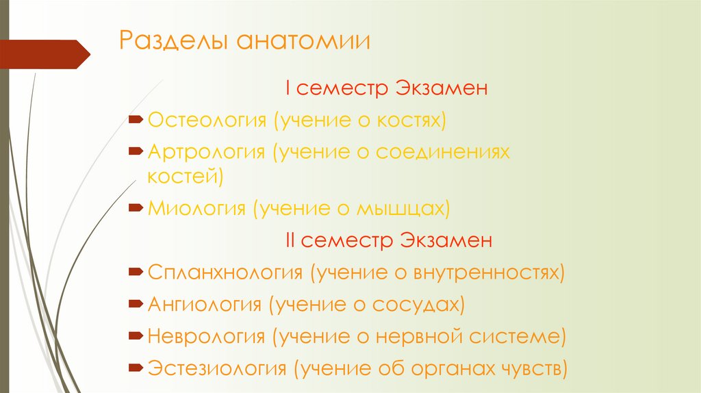 Разделы анатомииI семестр Экзамен