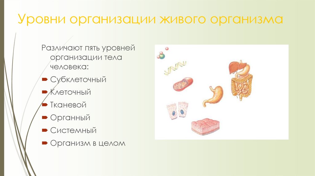 Уровни организации живого организма.