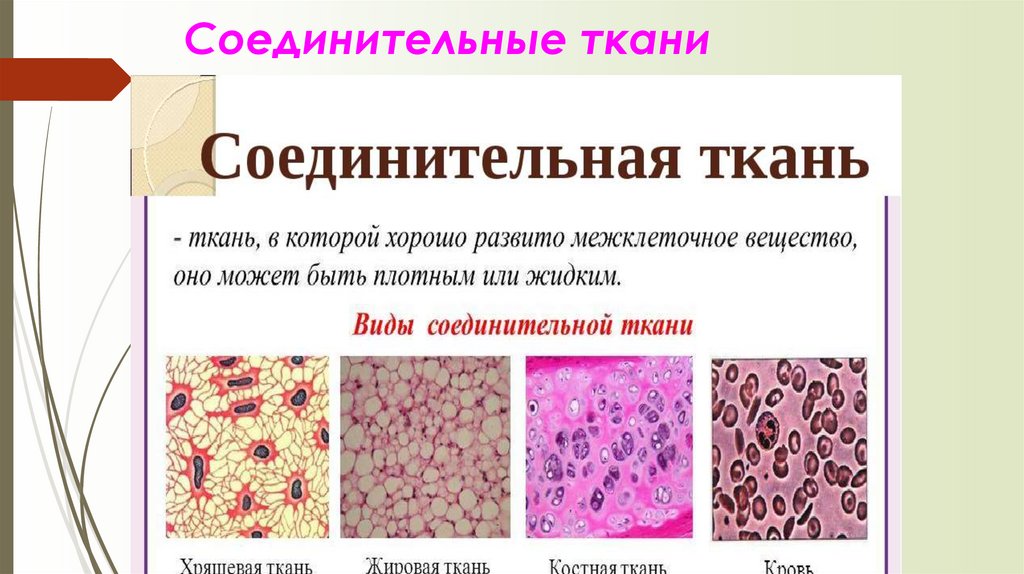 • Соединительные ткани (ткани внутренней