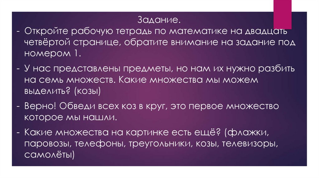 Задание.- Откройте рабочую тетрадь по математике на двадцать