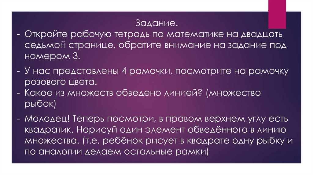 множества. (т.е. ребёнок рисует в квадрате одну рыбку и