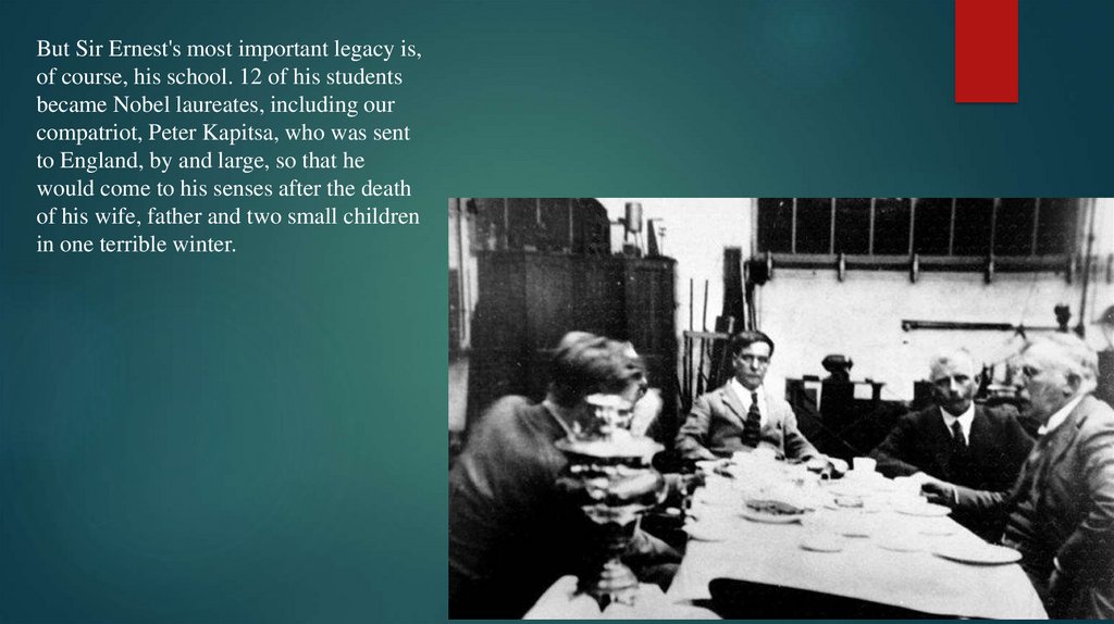 But Sir Ernest's most important legacy is,of course, his school. 12 of his students