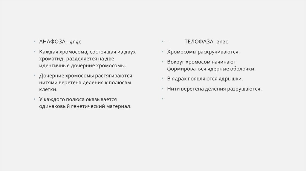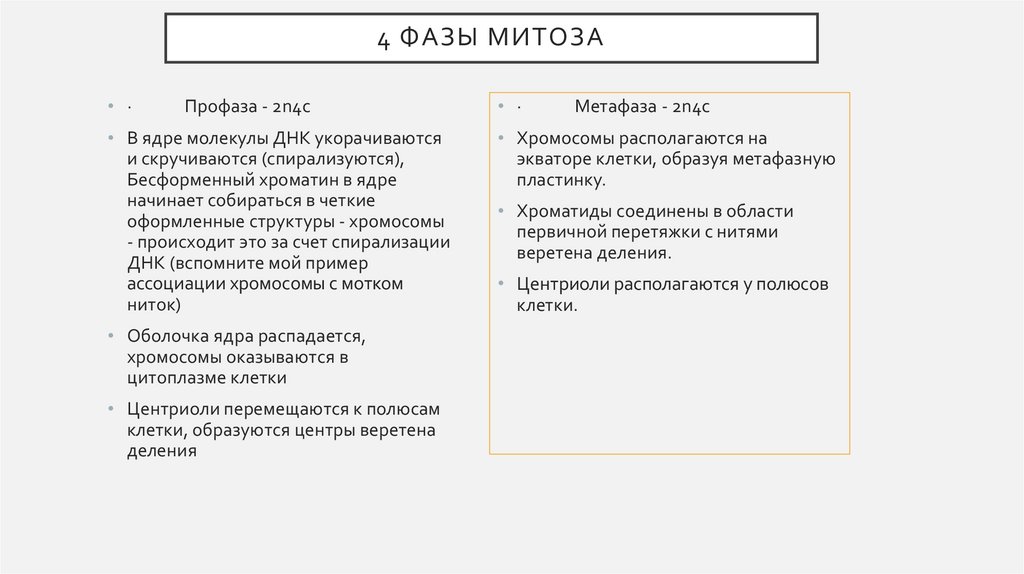 • 2. 4 фазы митоза(профаза, метофаза, анафаза, телофаза )