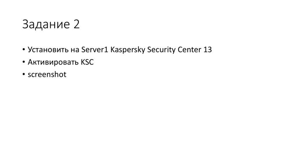 Задание 2• Установить на Server1 Kaspersky Security Center 13