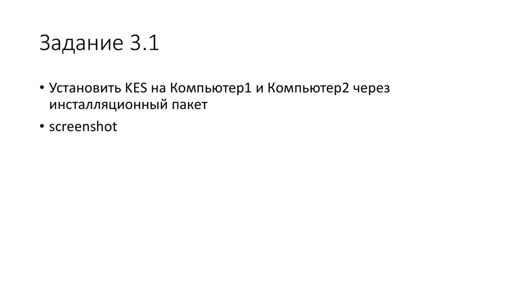 Задание 3.1• Установить KES на Компьютер1 и Компьютер2 через