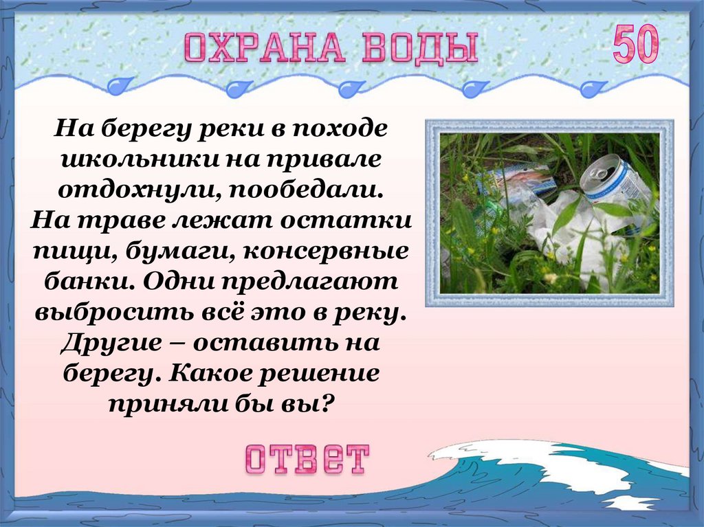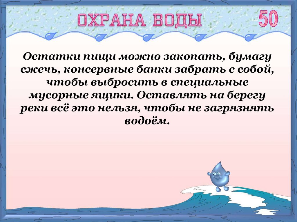 Не засорять реки.