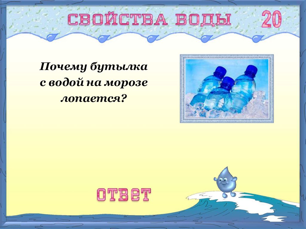 Почему бутылкас водой на морозе