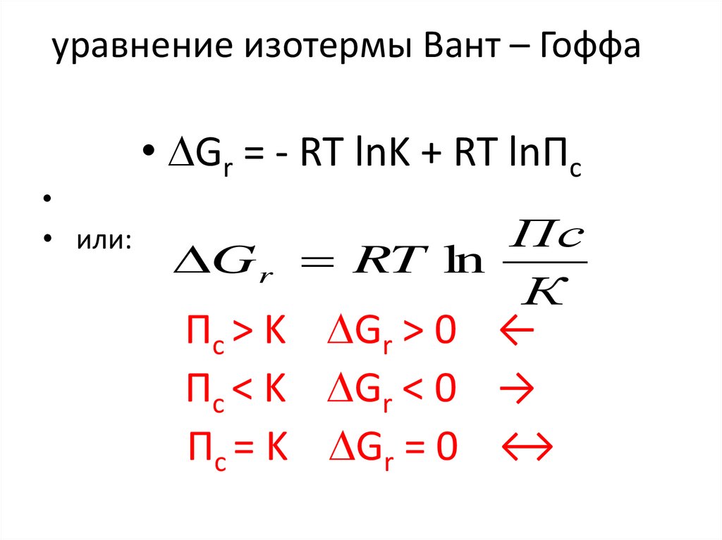 • Gr = - RT lnK + RT lnПс