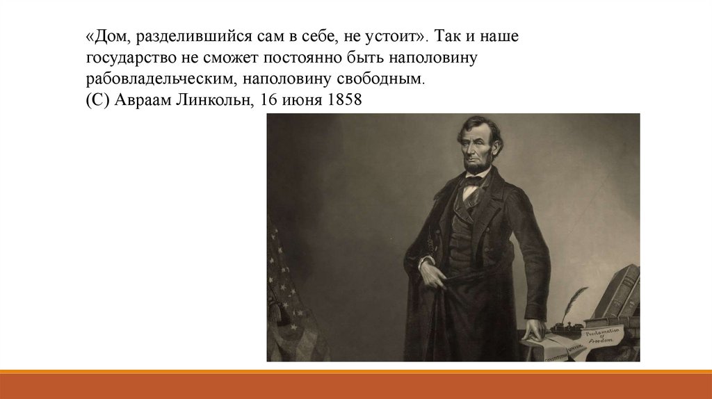 «Дом, разделившийся сам в себе, не устоит». Так и нашегосударство не сможет постоянно быть наполовину