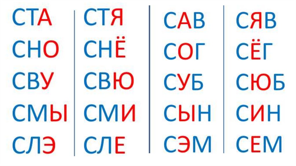 Слоговые таблицы