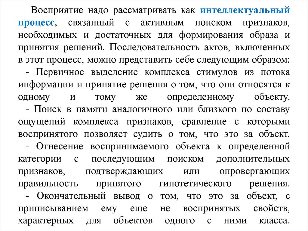 Восприятие - процесс формирования при помощиактивных действий субъективного образа целостного